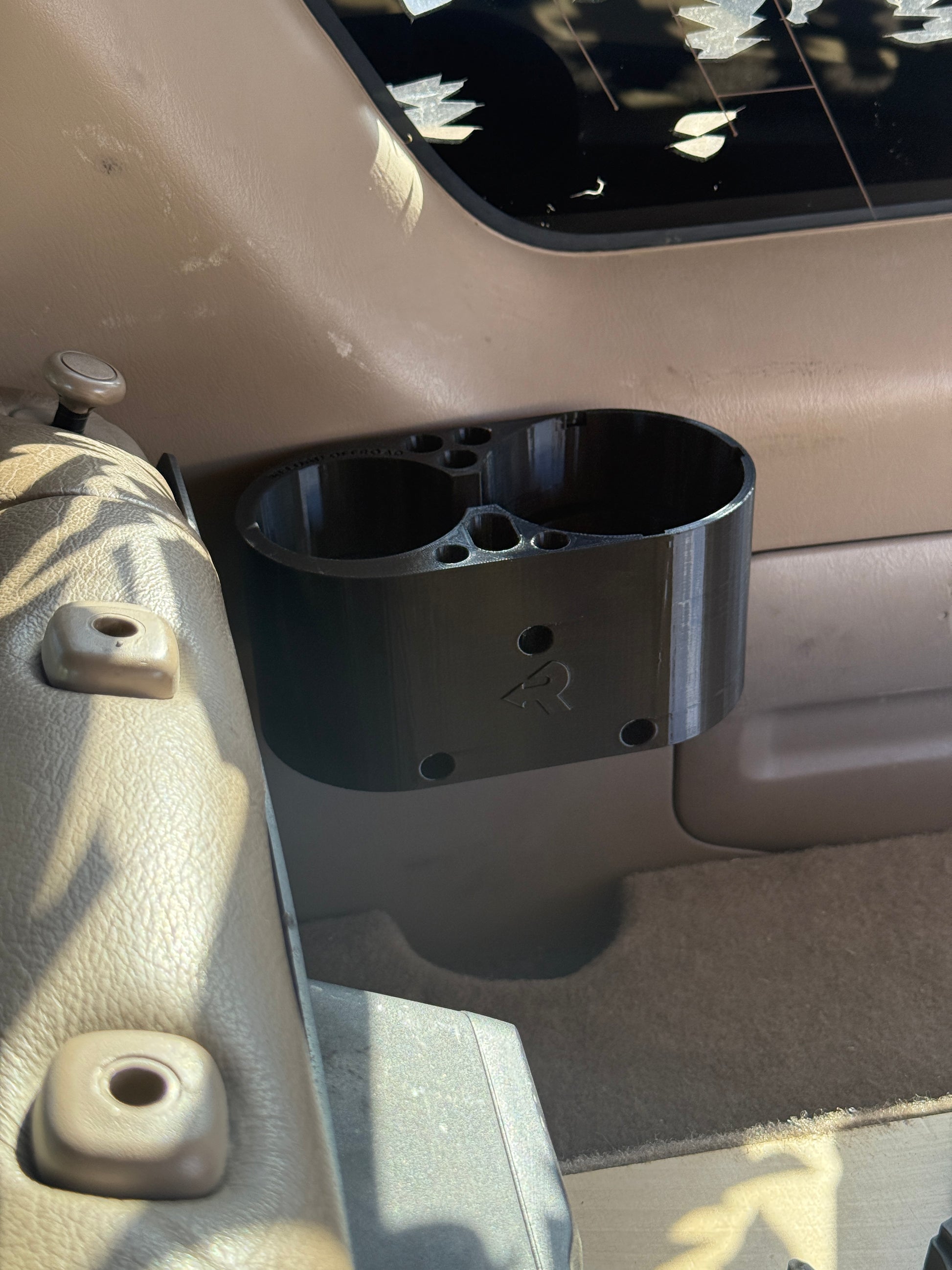 Fits 96-02 4runners. This cup holder mounts to the factory cargo cover mount. There is no cutting or drilling required for installation. The cup holder fits a plastic water bottle/ beer can and can fit a 32oz hydro flask if you buy the adapter add on. Does not fit the Stanley cup. All hardware for installation is included. All the dimensions are listed below, feel free to reach out on Instagram if you have any questions.